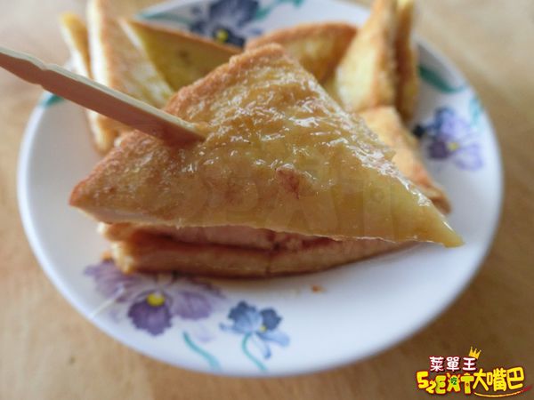 ▼招牌法式吐司,先將吐司裹蛋之後下鍋油煎,煎到兩面金黃就可以起鍋了,最後淋上蜂蜜就是最簡單的美味了~夾著蛋香的法式吐司吃起來油而不膩,還可以吃到蛋焦香,配上甜甜的蜂蜜超完美!