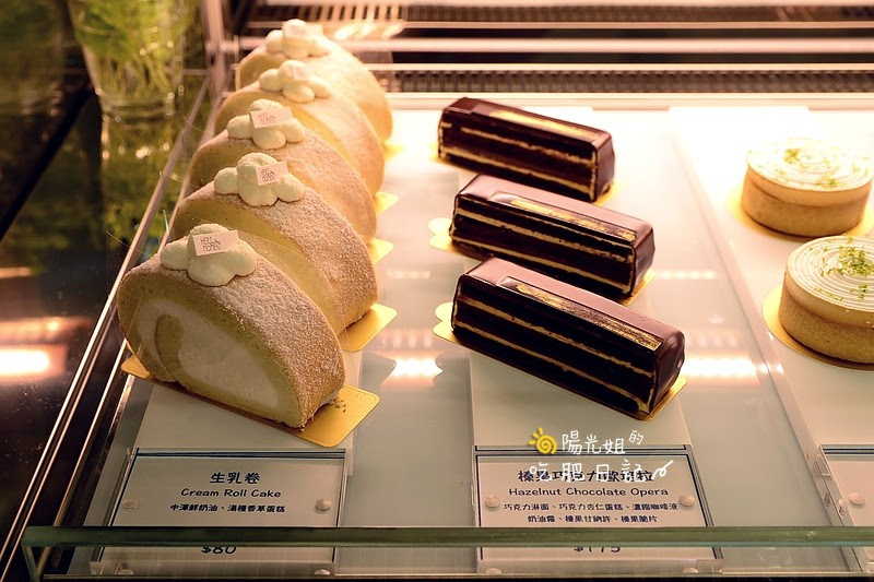 ▼切片生乳捲有著令人食指大動的鮮奶油,而榛果巧克力歐培拉則是閃閃發光一副貴氣樣!真叫人不知該如何選擇