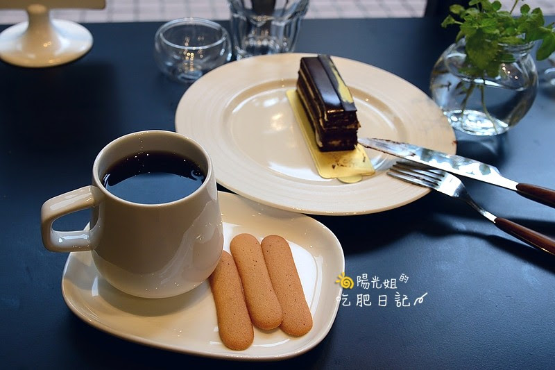 歐培拉是一種夾有咖啡糖漿和巧克力醬的杏仁奶油蛋糕,傳統的歐培拉蛋糕有6層,其中三層為浸泡過咖啡糖漿的海綿蛋糕,其餘三層是巧克力與奶油慕斯,並在最上頭點綴食用金箔,象徵巴黎歌劇院的金色屋頂。店家的歐培拉使用了巧克力淋面、巧克力杏仁蛋糕、濃縮咖啡液、奶油霜、榛果甘納許、榛果脆片進行組合,除了保有金碧輝煌的氣勢外,還能感受到明顯榛果和巧克力的香氣質感,光滑的鏡面巧克力和咖啡酒內餡,讓海綿蛋糕吃起來多了濕潤口感。