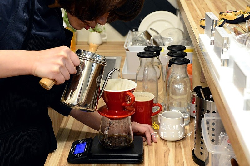 ▼店內的咖啡是用手沖的方式製作的~瞧店員妹妹全神灌注的在注水,觀察咖啡粉的狀態