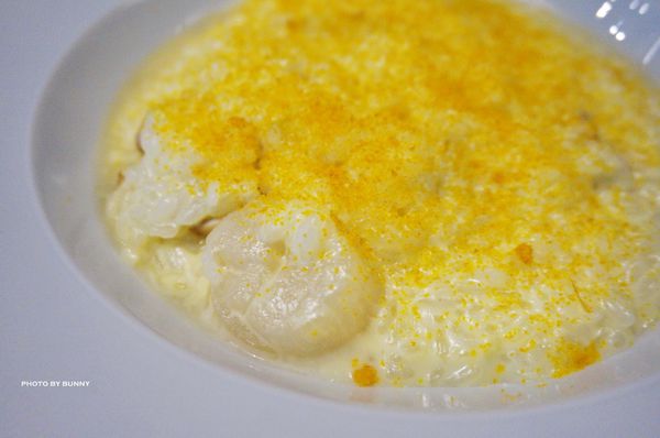 金黃色澤的烏魚子 豪邁的灑在燉飯上