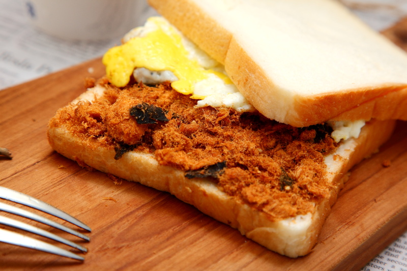 肉鬆蛋土司,使用自製肉鬆,食安嚴格掌控,晨吉司漢肉排蛋土司-旗艦店的肉鬆吃起來不像市售的那樣鹹,肉鬆肉質纖維也較為細緻,搭配香軟吐司剛剛好,少鹽低鈉,吃起來美味健康兼顧!