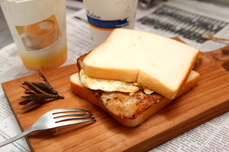 肉排蛋起鍋後便會送到前台來調味組合,簡單的撒上些許的胡椒抹上美乃滋,另外吐司是使用統一晨光吐司,咬咬也很喜歡晨光吐司香香軟軟的口感,為了保留吐司柔軟Q彈的口感風味,所以吐司一率不烤