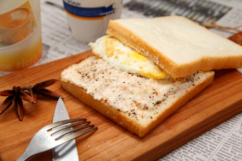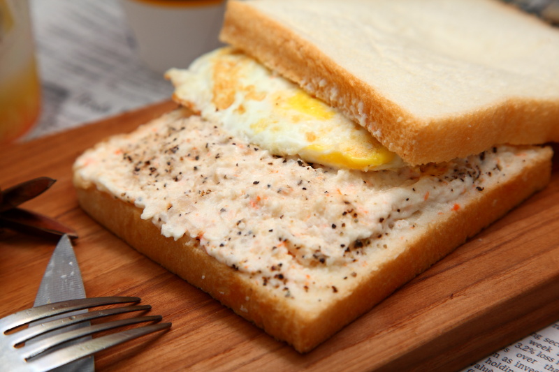 沙拉蛋土司,體驗馬鈴薯沙拉最純粹的美味!香軟土司上抹上厚厚一層薯泥沙拉,香滑柔順的濕潤口感,單純的美味越吃越令人著迷,鍋邊素也能享用唷!