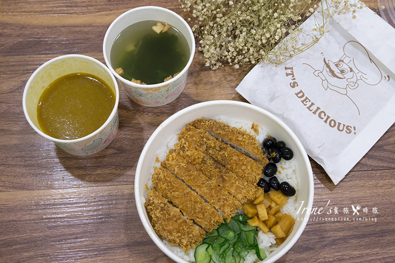 白飯、咖哩、湯品都分開裝盛,避免帶回家後炸豬排因接觸咖哩醬過久而軟化,