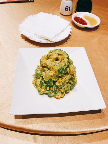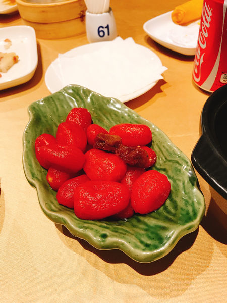 ㄧ上桌,服務生推了幾盤小菜過來任君挑選,我們挑了苦瓜跟番茄,後來體會~吃飲茶真的要配一點酸酸的番茄。華漾的港飲分為大、中、小點及特點、頂點,分別價位則為60、80、100、120、150元