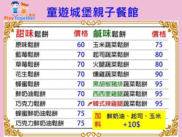 此外,也提供輕食餐飲,有甜、鹹的各式鬆餅口味,還有冷熱飲品,