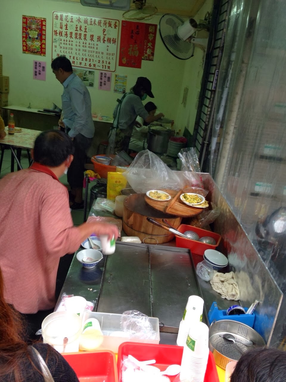 一間無名神店,聽說一定要試試它的蛋餅搭配熱花生湯!!!!從小到大從來沒這樣試過啊........從