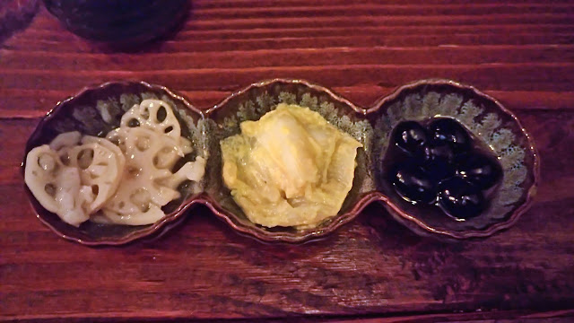 首先送上來的是小菜,不過我個人不吃蓮藕和黑豆,中間的黃金泡菜還不錯呢,另外發現他們菜單上有韓式泡菜哦!