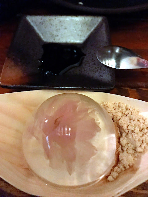 ▼最後這個像蕨餅的甜點,附黑糖汁與黃豆粉,可以想成類似愛玉的東西啦!