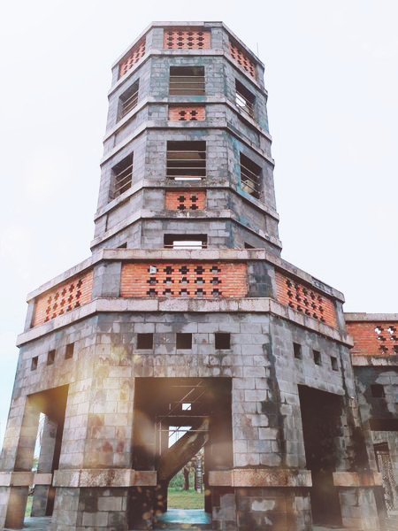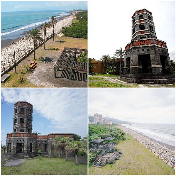 有燦爛美麗的海岸線和獨特的廢墟感八角造型瞭望台