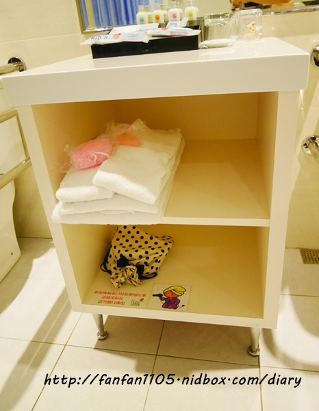 櫃子下方則是還提供了髮夾、浴沐球,對於長髮的人可是非常方便呢!