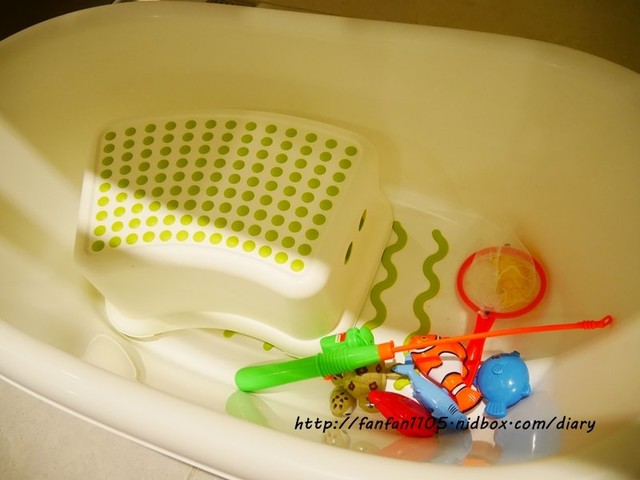這邊還有提供嬰兒澡盆裡面還有釣魚玩具,讓小朋友邊洗澡邊玩好開心