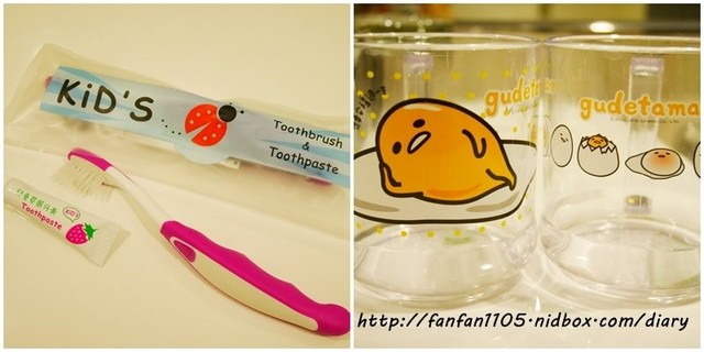 針對小朋友還提供了兒童牙刷,蛋黃哥的漱口杯,感覺真的很貼心
