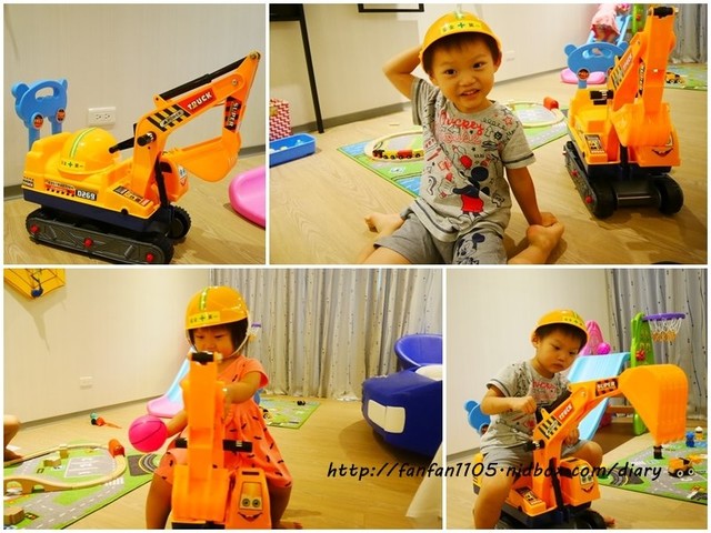 還有男寶最愛的挖土機,假裝是工程人員在挖動土石,寶貝角色扮演的很開心