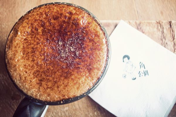 黑糖拿鐵上層是脆脆的焦糖,為咖啡增添多一層的風味。拿鐵的味道也很濃郁香醇,杯子手把上還有一枚小愛心圖案,非常可愛。