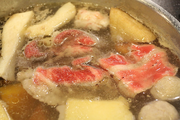 放進壽喜鍋看起來很美,真想一口就把整片吃掉
