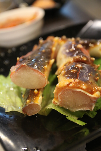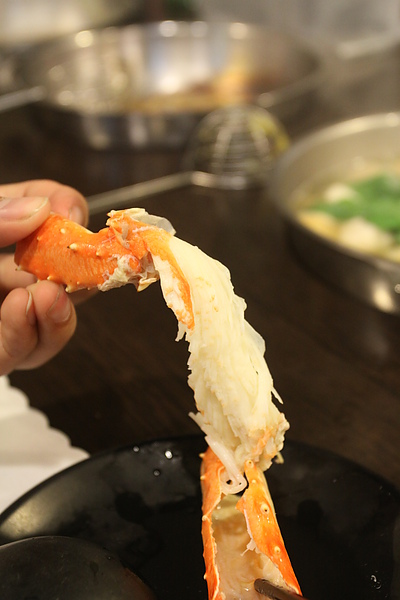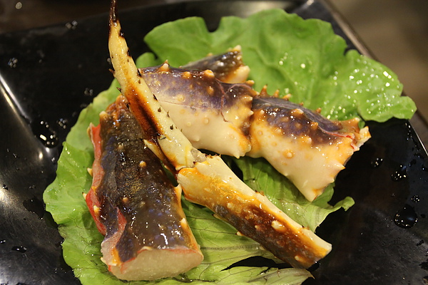 說實在話帝王蟹當然是好東西,但這蟹腳是冷凍貨,看起來就不如新鮮的花蟹誘人