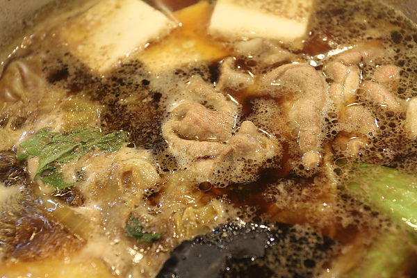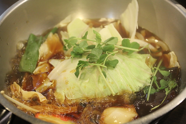 壽喜鍋上桌哩!照例先讓它滾一滾,然後就可以瘋狂放肉啦!!
