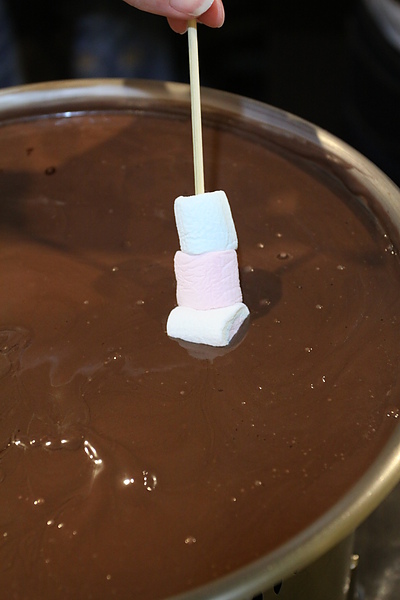 先用巧克力的良伴棉花糖來沾沾看,看起來非常甜呀!