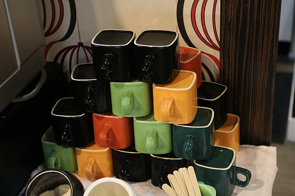 趁著等待熊先為自己跟喵弄了兩杯咖啡,這裡的咖啡機旁堆了像小山一樣的咖啡杯
