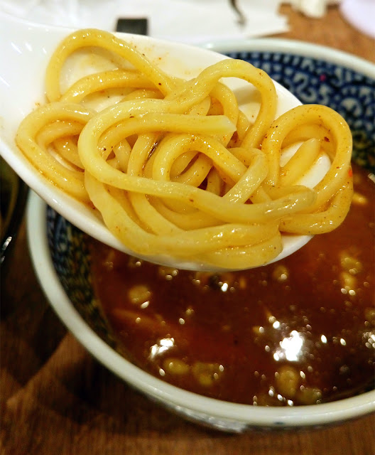 魚介醬汁味道非常濃郁,上面有一陀魚介粉,味道非常非常鹹,旁邊有高湯可以加。