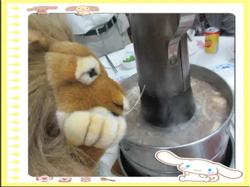 李奧在舀湯,這裡的湯頭實在不賴,只是有痛風的朋友們要注意適量啊