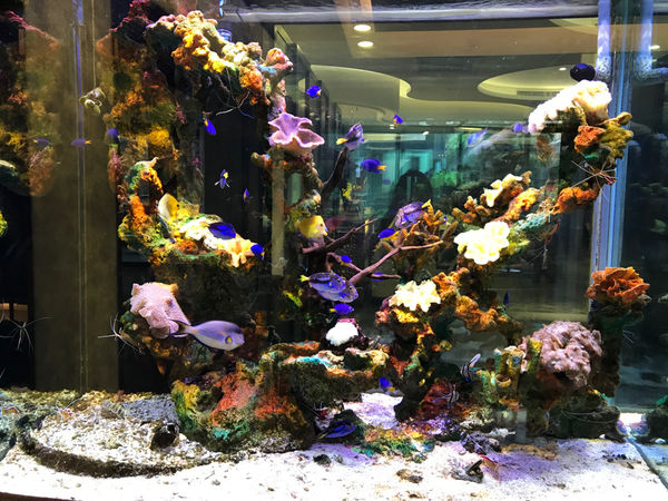 餐廳門口兩個中大型海水水族箱非常漂亮,