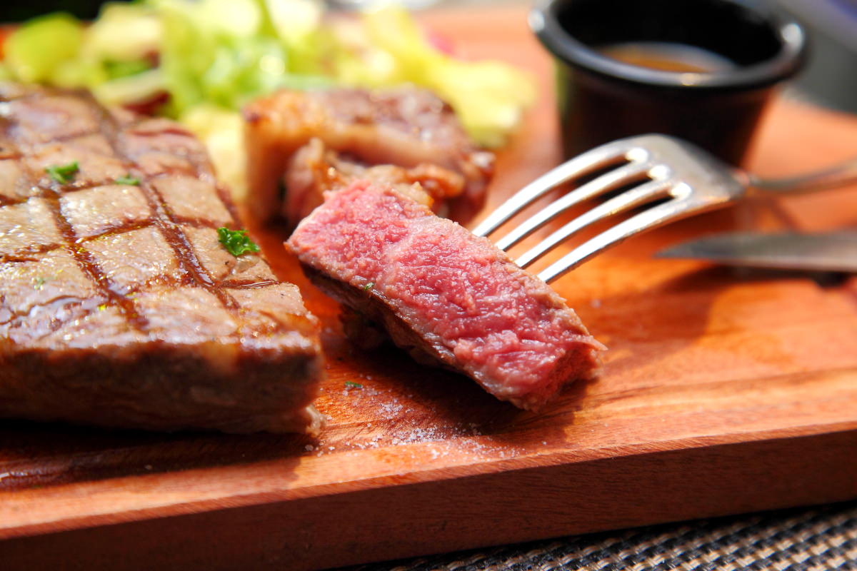 全程明火碳烤,且堅持原味的烹調方式,讓美國肋眼心牛排呈現最純粹的牛肉原味,五分熟度一刀切下,沒有絲毫肉汁流出,肉汁完全封鎖在牛排之中!