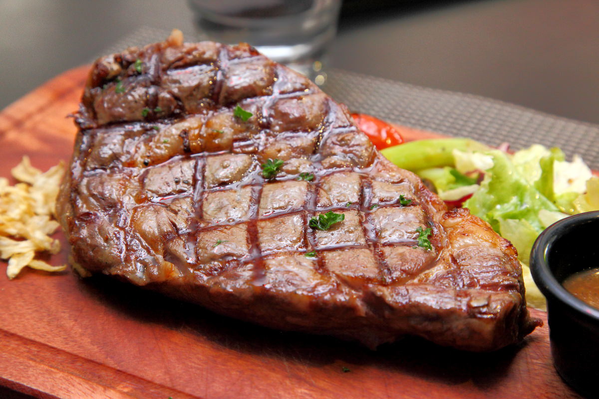 Bangles Bistro 班格斯西式餐館採用鑄鐵直火燒烤牛排,美國肋眼心牛排烙上漂亮的烤痕同時飄散出濃郁的燒烤香氣