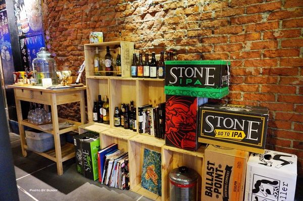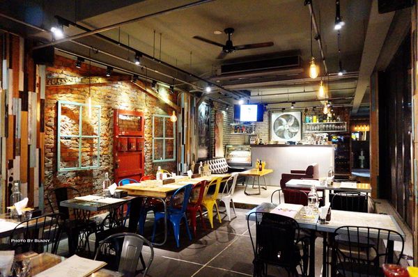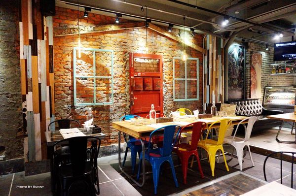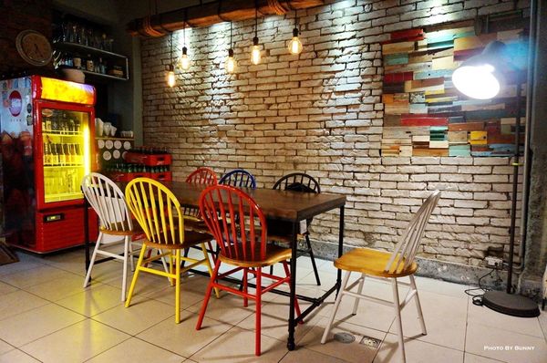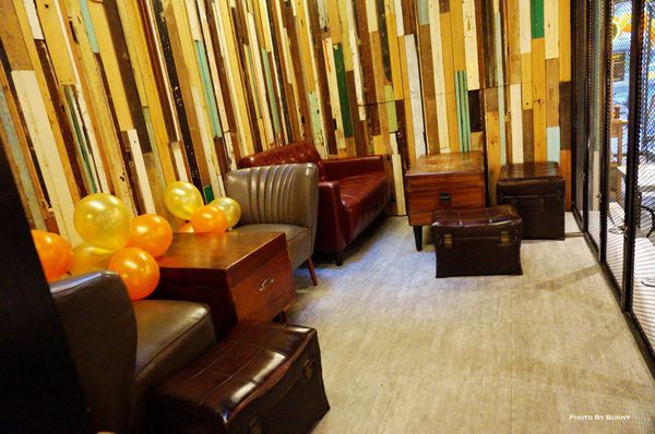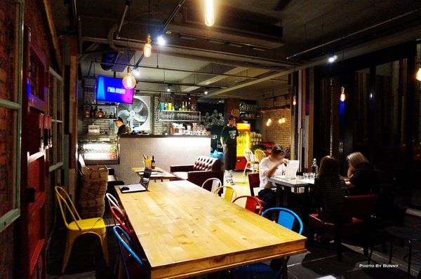 店內裝潢多金屬、木質及藝術燈泡襯托
