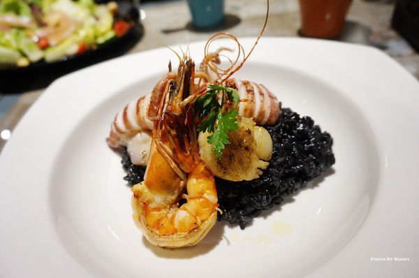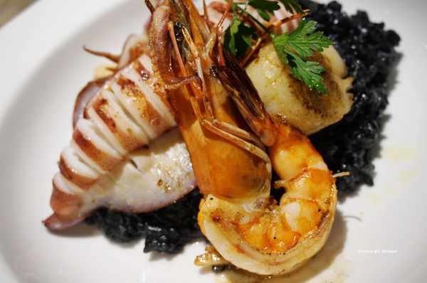 經典主餐先送上的是澎湖海鮮墨香燉飯
