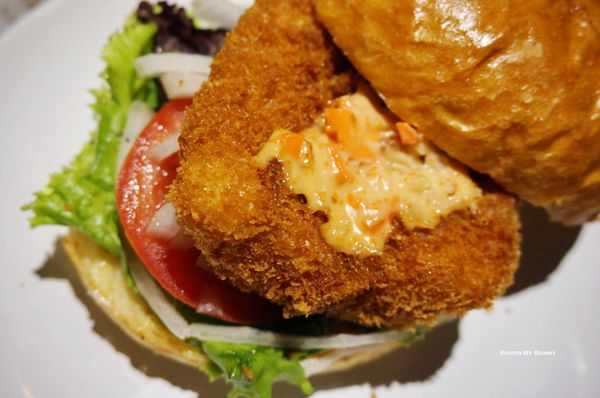 豪邁的大口咬下 先感覺到漢堡麵包Q中帶鬆軟的口感