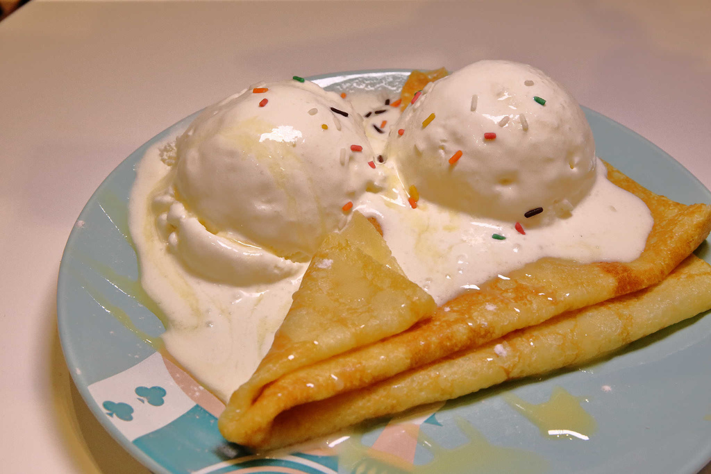 溫熱的法式薄餅加上香草冰淇淋,冰火交融的口感激盪你的味蕾,真的是無敵的美味享受〜