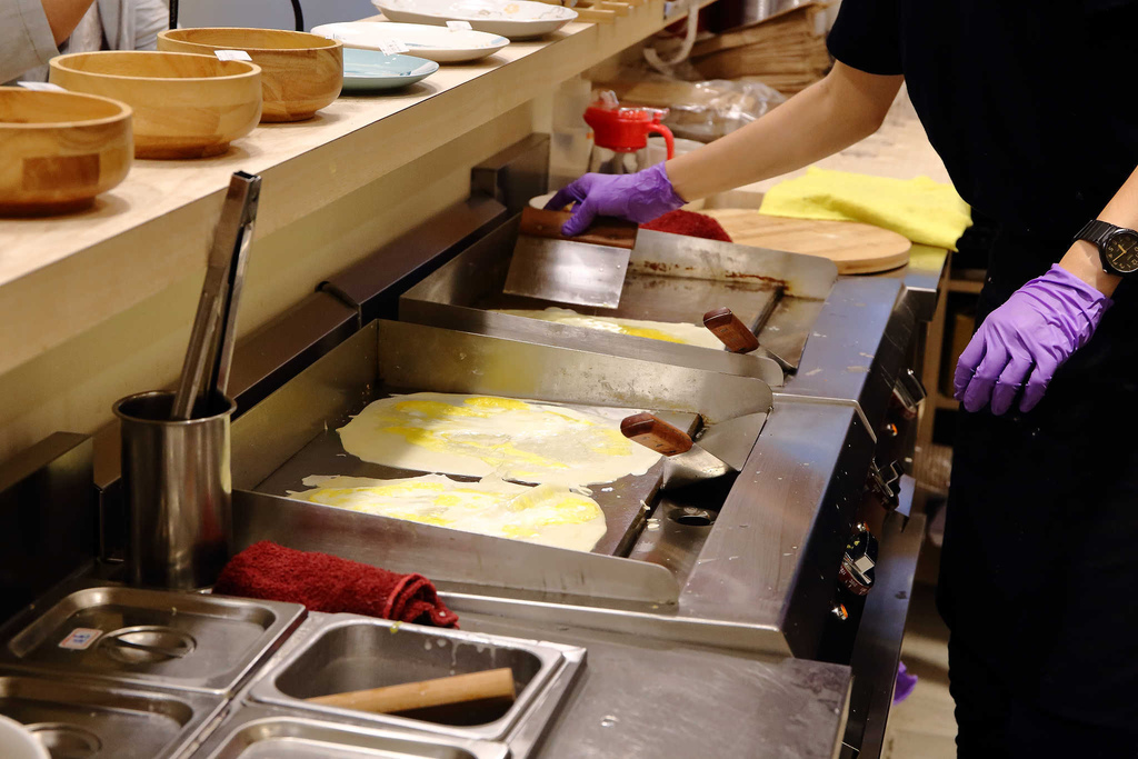 製作薄餅的區域採取開放式廚房,可以清楚看見製作食物的過程