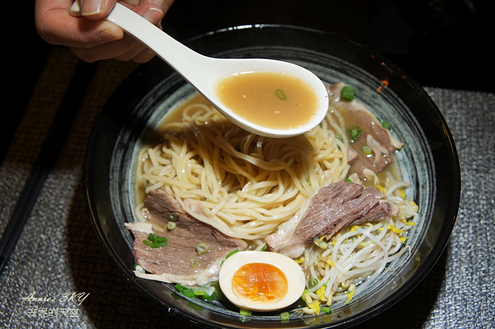這碗獨家醬白醬一上桌,坦白說有點小失望,因為除了麵條外,只有半顆糖心蛋以及豆芽菜和蔥花,老闆你有搞錯嗎?