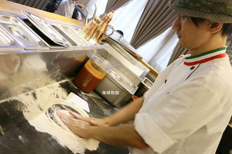 披薩為現點現做,使用手桿麵糰