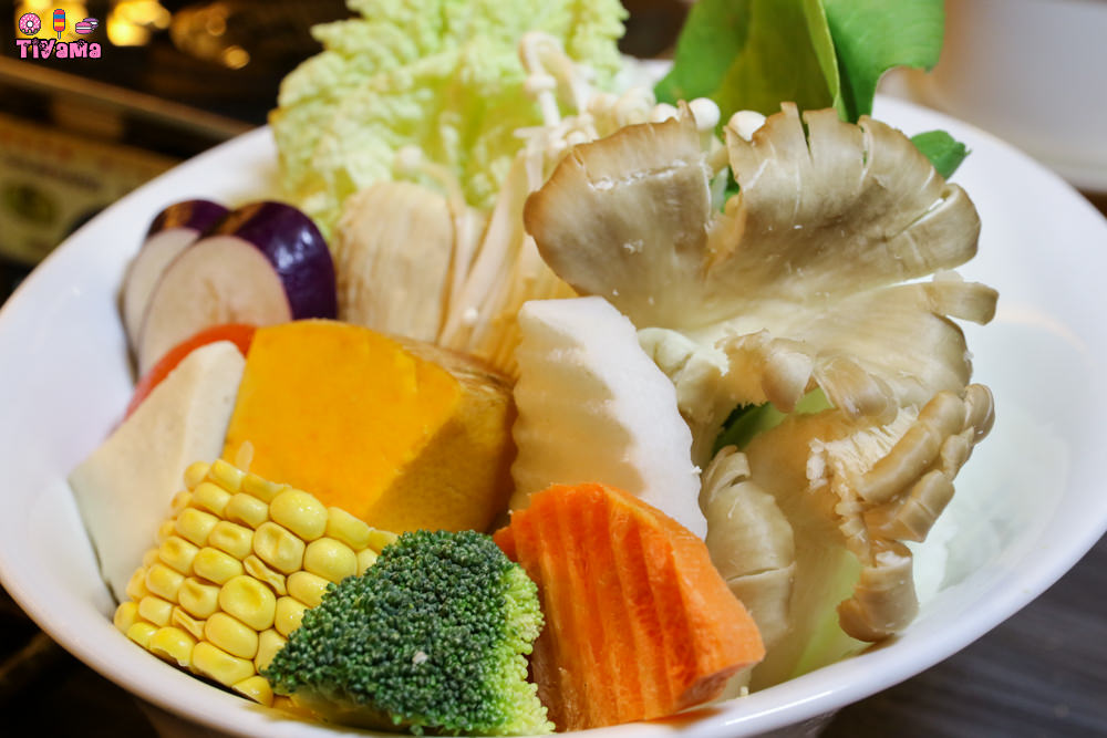 綜合菜盤的份量足,食材也豐富~約14種蔬菜、菇類、豆腐、豆皮…等等,看這新鮮脆綠的程度就令人滿意
