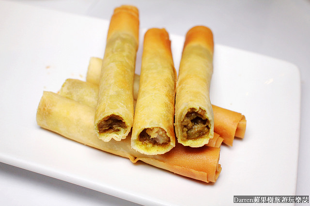 黃金雪茄卷,外型有點類似雪茄,不過個人覺得還蠻像脆迪酥,裡頭是日式咖哩跟豬肉餡配上脆脆的春捲皮很受小朋友歡迎