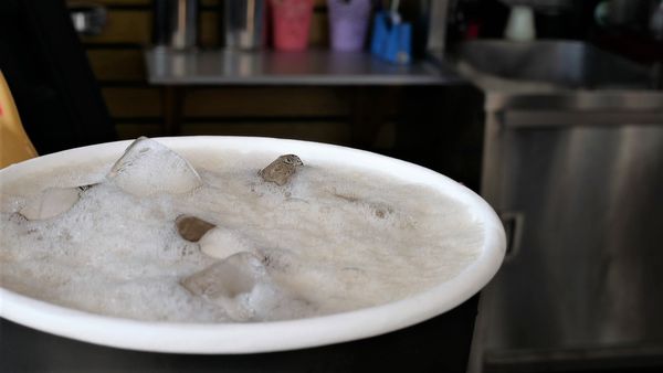 純手工雪克杯搖出的茶皂素,分佈於滿整個杯口~