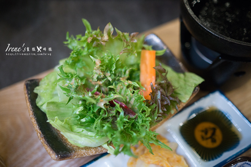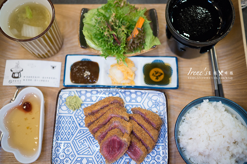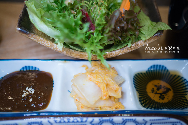 乍牛的餐點皆以定食呈現,包含白飯、沙拉、沾醬、小菜、味噌湯、主餐、甜點,