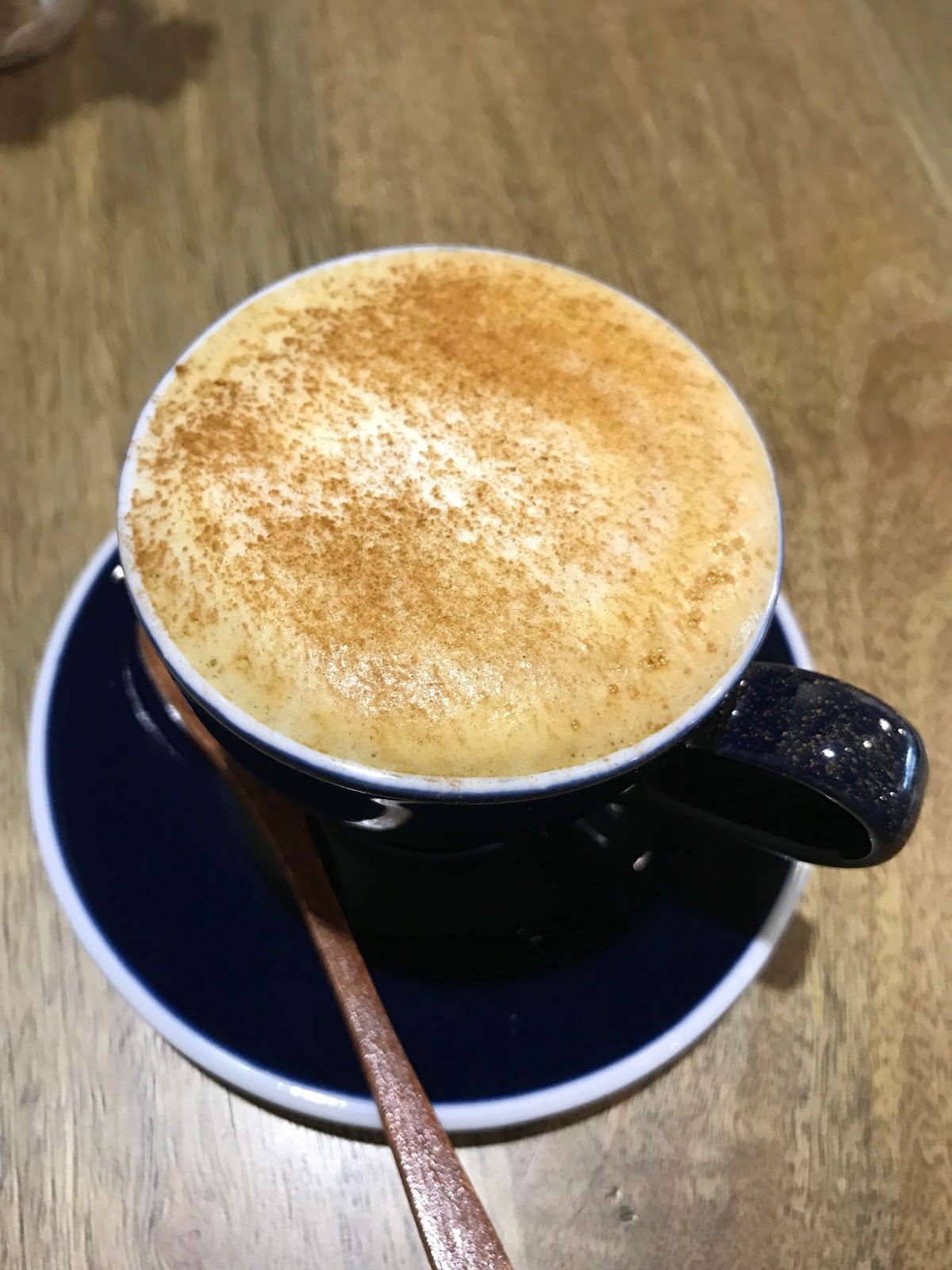 卡布奇諾雖然很小杯,卻十分濃郁,做得想當講究,上面細細灑滿肉桂粉,原本還有檸檬皮,但我請店員不要幫我加檸檬皮,喝起來滿口咖啡芳香,還有肉桂的餘韻。