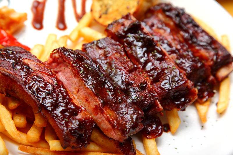 一上桌就可聞到濃濃的美式燒烤醬的香氣,也很貼心的把豬肋排分切開方便食用,咬咬在拍別的餐點時一直聞到豬肋排飄過來的香味