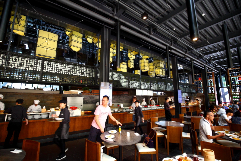 日本料理跟港式飲茶基本是風格迥異,所以村民食堂將空間做了大改造,除了將方桌全部改成中式圓桌,原本的大水池也全部填平,增加座位數量,但仍舊維持相當的用餐舒適性,一進門分成兩個主要區域,一邊是採光明亮的圓桌用餐區,另一邊則是整排的開放式廚房