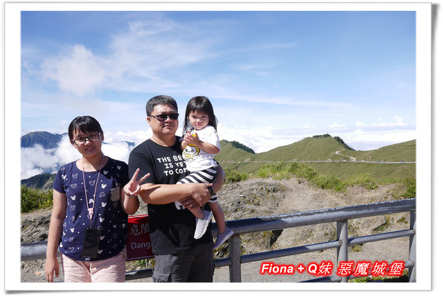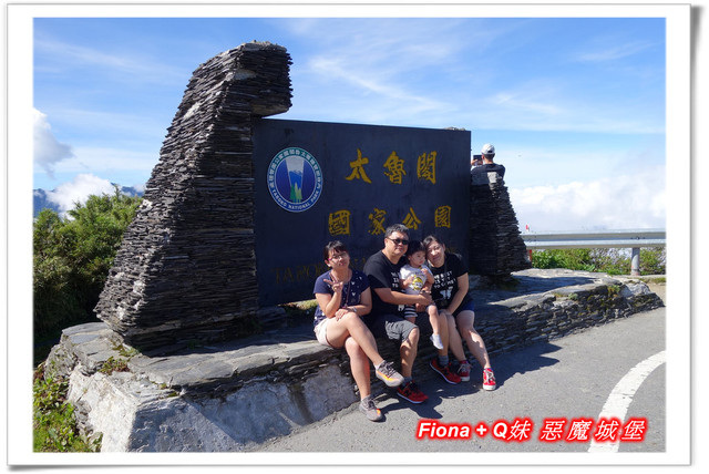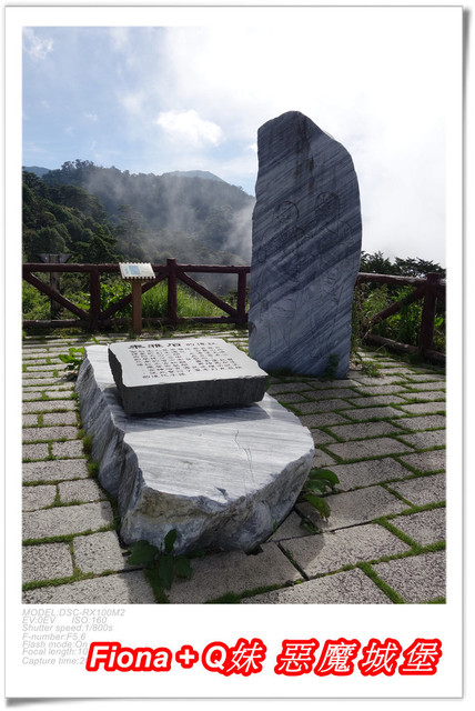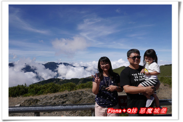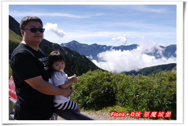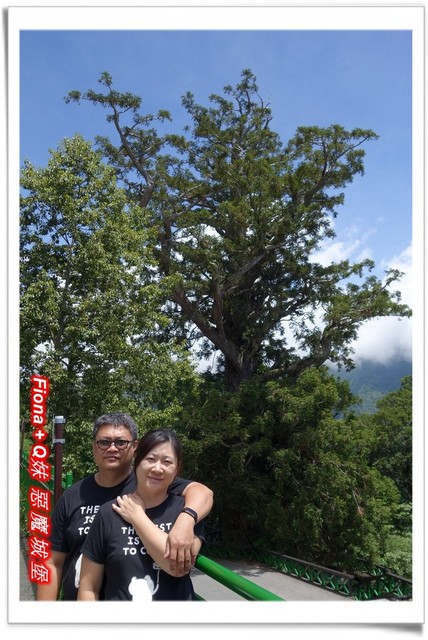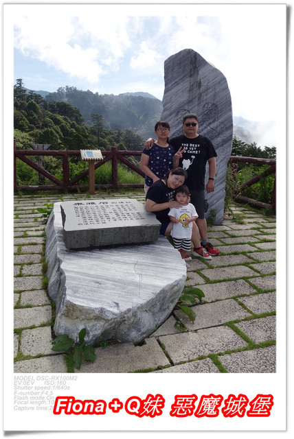 走上觀景台,有一塊大石頭,上頭寫著「泰雅石的傳說」,大致是描寫泰雅族「裂石生人」的傳說,小叔在這幫我們拍了此行的第一張全家福,有小叔一起出門玩樂的好處就是我的照片會比較多,哈哈 !
