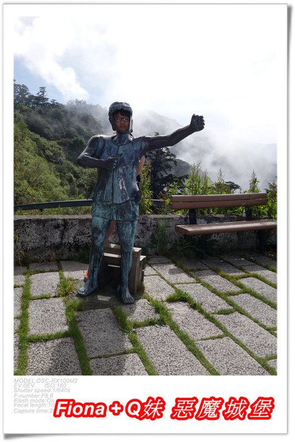 這裡設立的一個泰雅勇士雕塑,遊客可以裝扮成穿著便裝的勇士,姊妹倆誰比較威武呢 ? 呵呵 !