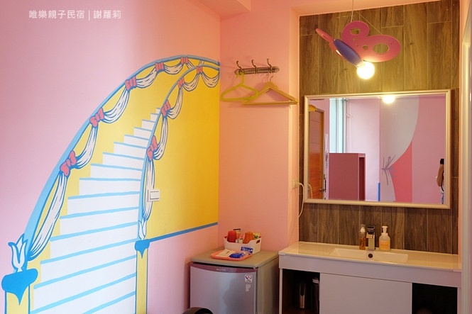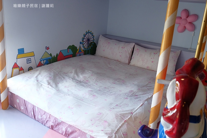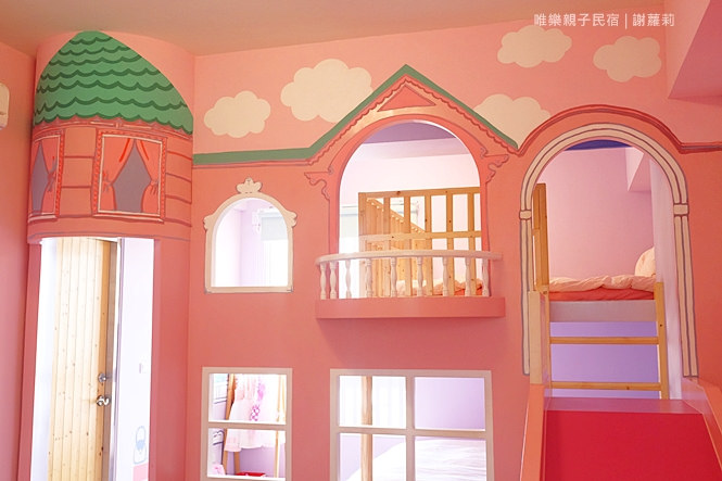 把旋轉木馬的遊樂園搬進房間裡,甚至還在裡面蓋起一棟粉紅色城堡,當你看見它的場景打造時,可是會有點不敢相信你的眼睛而忍不住驚呼,因為這間民宿真的好可愛呦!