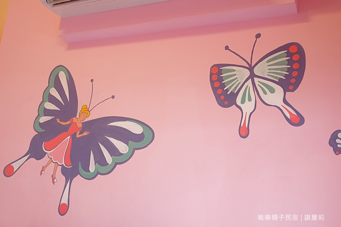 蝴蝶塗鴨生動地悠遊在粉紅牆上,我都覺得我像來到什麼不得了的粉紅世界了!:)