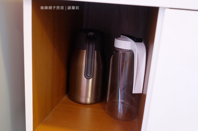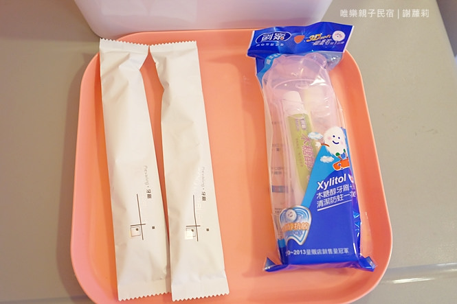 親子民宿除了擁有可愛溫馨元素,當然基本的生活必需品也少不了,像是牙刷、牙膏、水壺、毛巾、沐浴乳、洗髮精,一樣也沒少,反而比想像中準備得更齊全。
