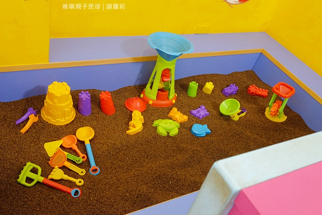 相信常帶小孩到親子廳餐的爸爸媽媽對這個場景都不算陌生,這邊也有小朋友都喜歡的決明子沙坑,像個小沙灘似的,可以玩耍的周邊道具也不少。